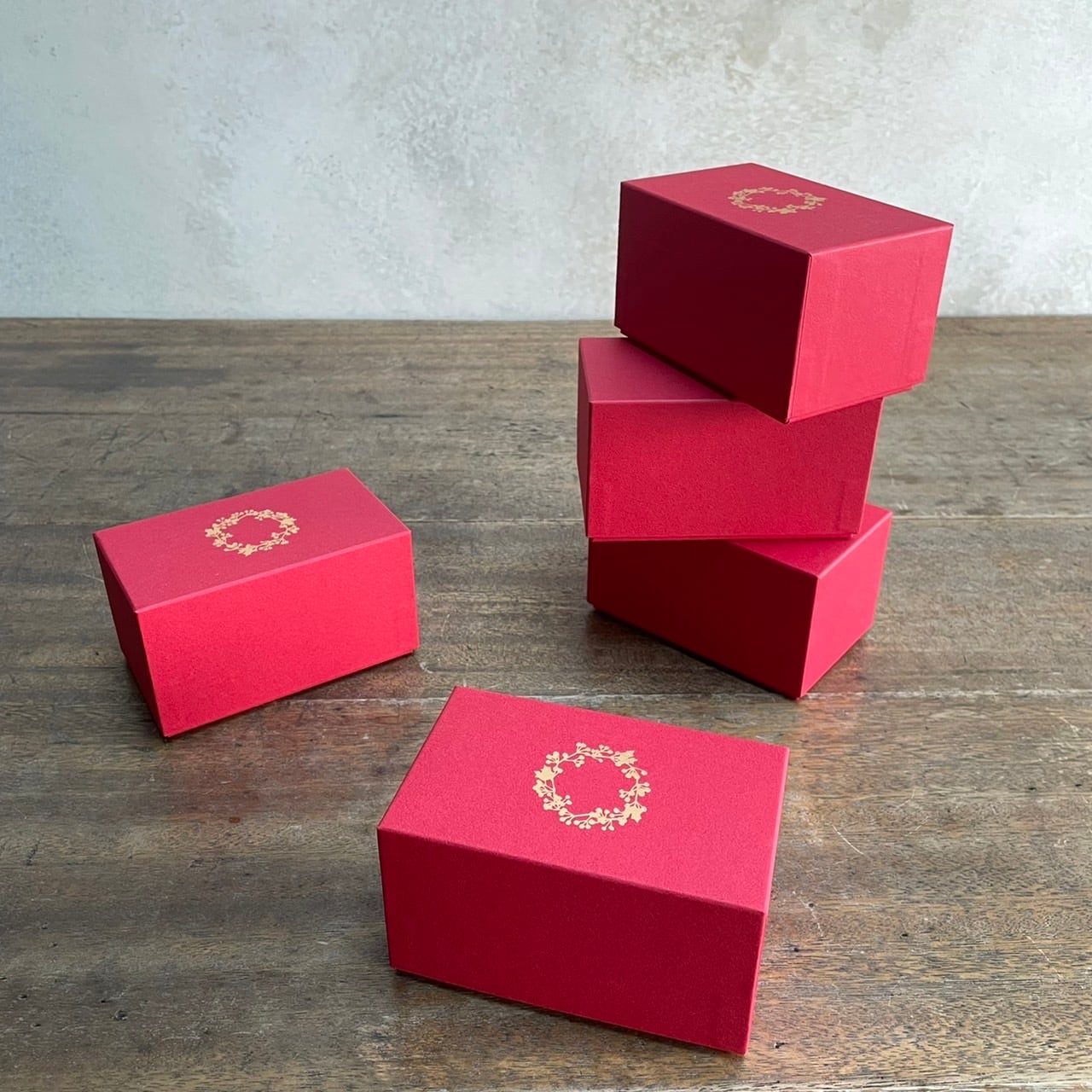 限定のクリスマスカラーのお箱にお入れしてお届けします。大切な方への贈り物や、ちょっとしたおもてなしにもぴったりです。