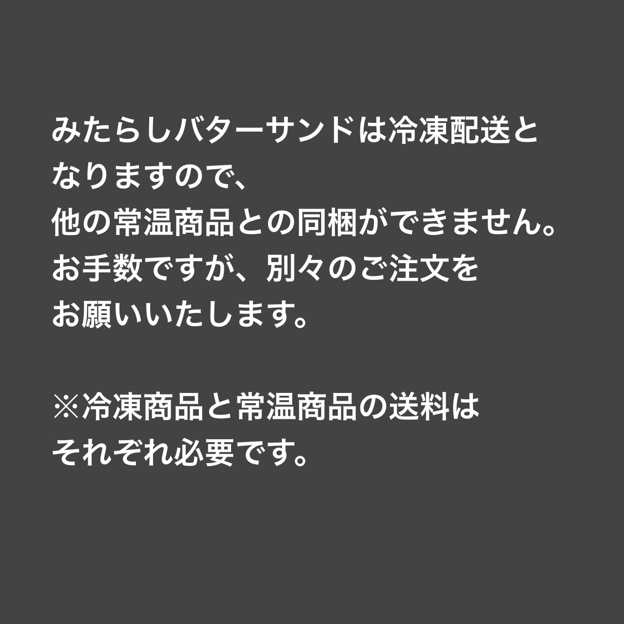 ※この商品は冷凍商品「みたらしバターサンド」とは同梱できません。