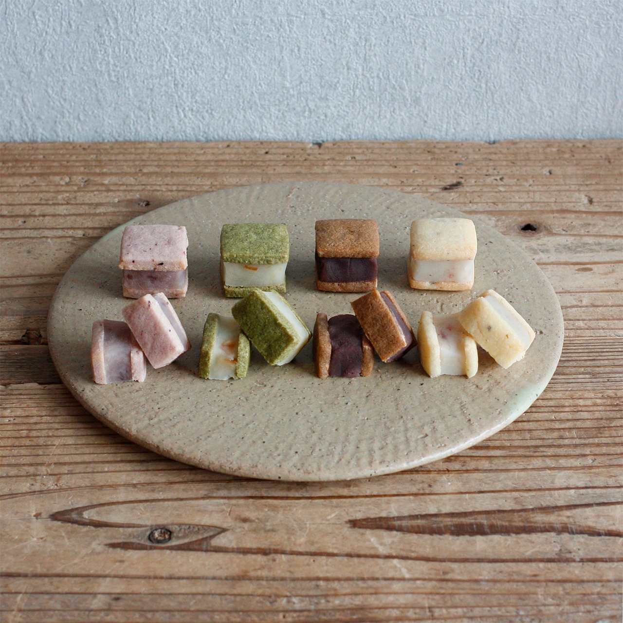それぞれ異なった風味の焼き菓子と餡の組み合わせで、お味の重なりをお楽しみください。